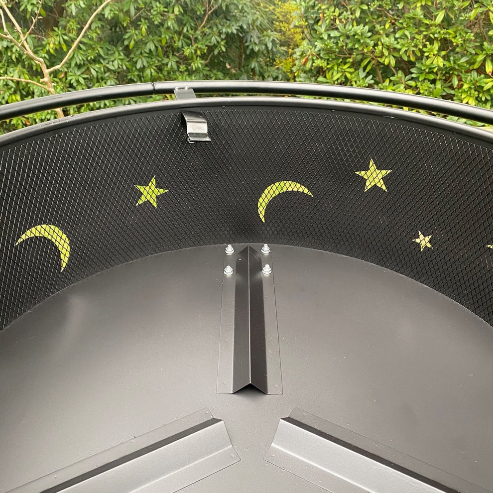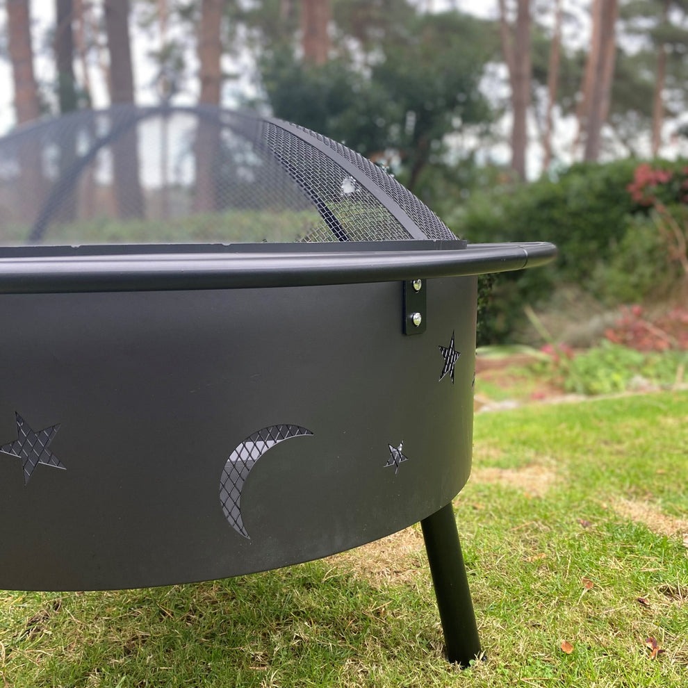 This Moon & Stars Outdoor Fire Pit adds warmth and charm to any garden setting. Made from durable heat-resistant steel, it features decorative moon and star cut-outs that create a stunning glowing pattern when the fire is lit. Perfect for outdoor gatherings, BBQ nights, and cozy winter evenings. Easy to assemble and built with sturdy legs for stability.